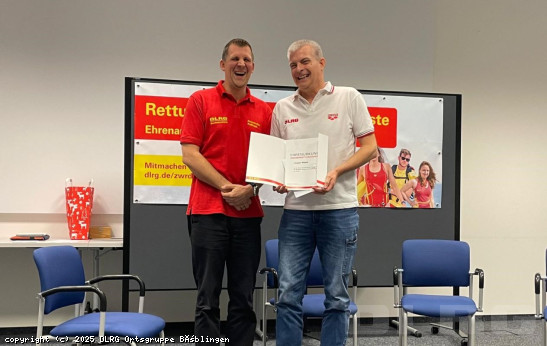 Am 14.12.2024 wurde unser Mitglied und aktueller Vorsitzender Jürgen Rieser durch das DLRG-Bundespräsidium für seine 30-jährige aktive Mitarbeit im (zentralen) Wasserrettungsdienst Küste (ZWRD-K) geehrt. ... Mehr erfahren